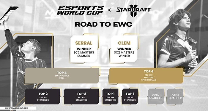 Eighteen (18) of the world’s best StarCraft II players will compete in a five-day tournament, for a a to-be-announced prize pool, with Joona “Serral” Sotala and Clément “Clem” Desplanches being chosen as the first players to join the main event in Riyadh thanks to their victories at the ESL SC2 Masters Summer and Winter. The upcoming events, IEM Katowice and ESL Masters Spring at DreamHack Dallas 2024 (or through regional EPT standings), will serve as direct qualifiers to the finals in Riyadh.